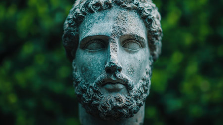 Marble bust of a bearded man in a garden