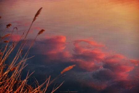 Reflection of clouds at sunset in the water
