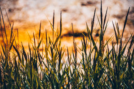 grass on the swampy shore of the lake