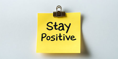 Yellow Sticky Note on a White Background Stay Positive Message with Room for Copy.