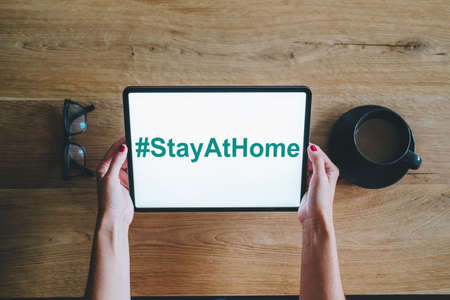 Stay home message. Staying at home with self quarantine to help slow outbreak and protect virus spread.