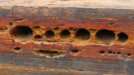 Close-up of termites actively consuming wooden beams, highlighting the destructive nature of these pests and the potential threat they pose to household structures