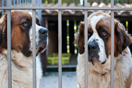 St. Bernard Dog Waiting in his cage