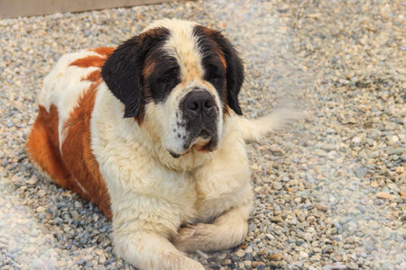 Adorable Saint Bernard With Rich Brown Fur Displaying Huge Head and Heartfelt Emotions on Stone
