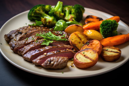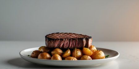 AI Generated. Grilled steak and roasted potatoes on a plate