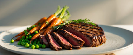 AI Generated. Juicy Grilled Steak with Roasted Carrots and Peas
