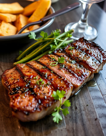 A juicy cut of meat, grilled to perfection