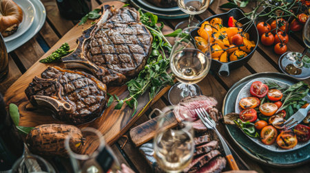 Luxurious steak dinner with premium sides, a feast for the senses