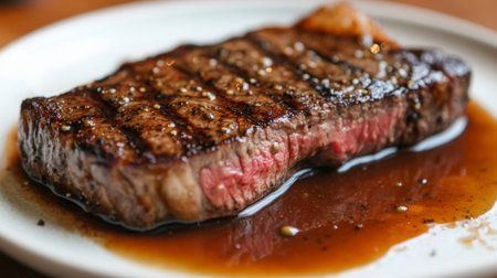 Seared to Perfection A Juicy, Delicious Dry-Aged Steak Drizzled in Glaze on a White Plate