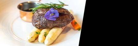 The food in the restaurant. Food styling and restaurant meal serving. Gourmet restaurant menu concept. Creative stylist restaurant