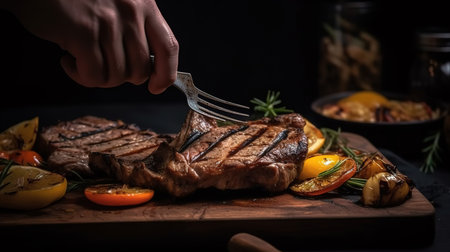AI Generated. Delicious steak with grill marks and vegetables ready for your barbeque party