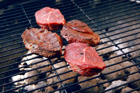 Fresh beef steaks on grill or BBQ