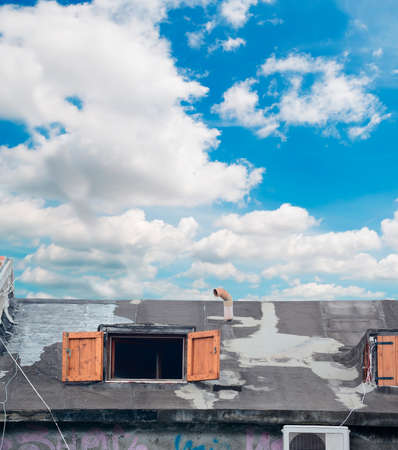 Engineers worker install new roof at construction site,Roofing tools,CPAC roof technician,Construction concepts.