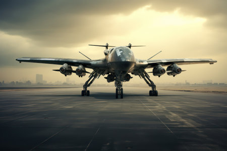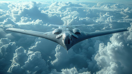 military drones, an unmanned drone soaring above the clouds, symbolizing advanced reconnaissance capabilities and the use of cutting-edge technology in modern warfare