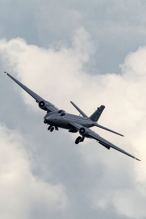 RAF Waddington, Lincolnshire, UK - July 7, 2014: Former Royal Air Force English Electric Canberra PR.9 photographic reconnaissance aircraft G-OMHD operated by Midair Squadron.