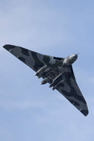 Farnborough, UK - July 19, 2014: Former Royal Air Force (RAF) Avro Vulcan B.2 bomber aircraft XH558 operated by the Vulcan to the Sky Trust.