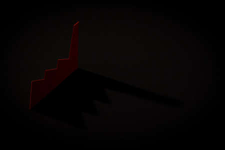 red color paper cutout in plain factory shape stand on light with shadow on black background, in concept of industrial environment and outstanding.
