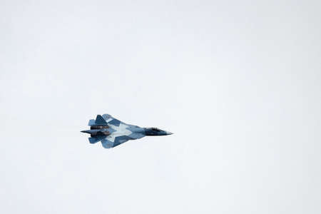Moscow Russia Zhukovsky Airfield 25 July 2021: Demonstration of the latest Russian SU-57 fighterof the international aerospace salon MAKS-2021.