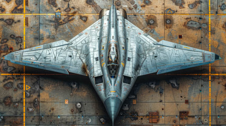 Stealth bomber jet top down front view. Generative AI.