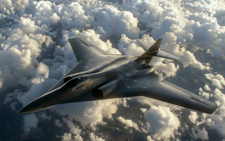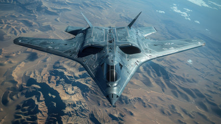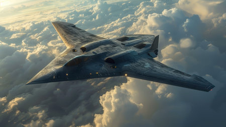 A stealth bomber flying at high altitude, Ai generated image