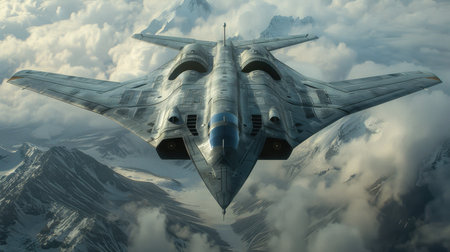 A futuristic fighter jet flying through the air. Generative AI image.