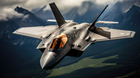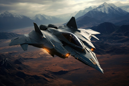 Fighter jet soaring. A sleek and stealthy fighter jet. Generative AI