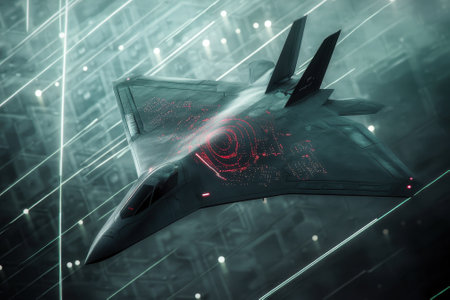 quantum radar system detecting stealth aircraft, created with generative ai