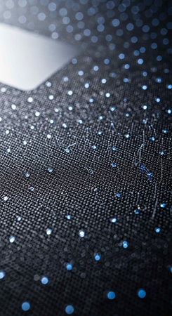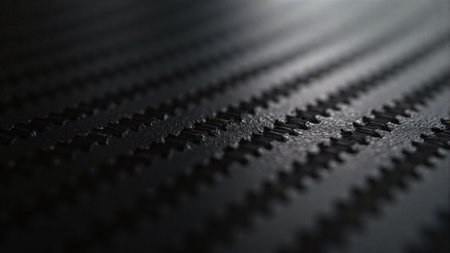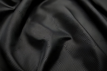 Close-up view of a textured black surface, ideal for various design projects. The intricate pattern and smooth appearance create a modern and elegant backdrop.