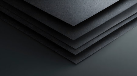 This image features a close-up view of stacked black paper with rich texture against a dark backdrop. Ideal for artistic and design projects.