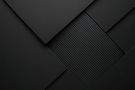 Dark, matte geometric panels overlap with subtle shadows, creating a sophisticated and minimalist abstract background.