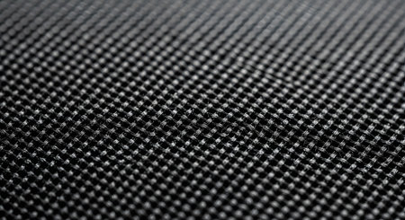 A macro, close-up photograph of a black mesh fabric with a shallow depth of field. The tightly woven grid pattern creates a modern, abstract textured background, ideal for concepts of technology, durability, and materials science.