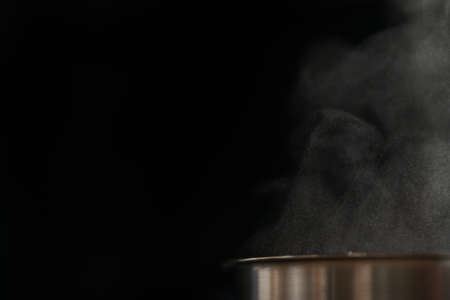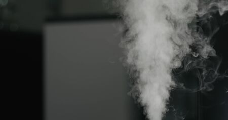 Hot streaming steam in the dark room background.