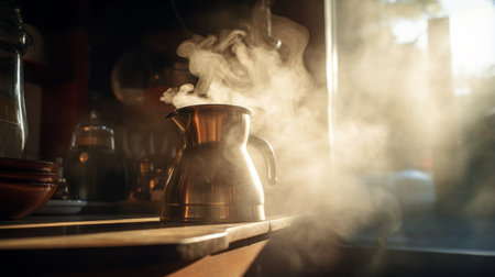 Morning sun filtering through coffee steam, a poetic visual