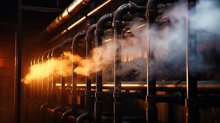 Captivating Macro View: Industrial Boiler Unveiling Steam Clouds and Advanced Cooling System