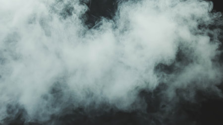 Voluminous white smoke rises and swirls in a dark setting creating an ethereal and captivating visual effect perfect for dramatic atmospheres.