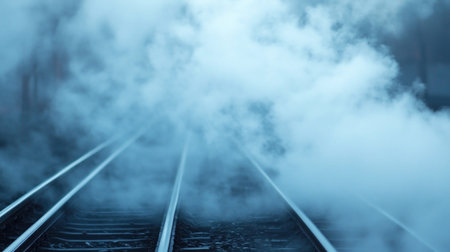 A close-up shot of train tracks disappearing into a cloud of steam.