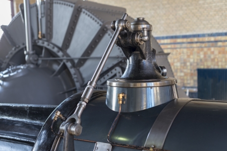 Vintage mining winch empowered by steam engine. Pistols and valves.