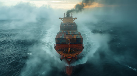 A ship emerging from the foggy harbor --ar 3:2 Job ID: 328dd50c-de7f-4d96-8f6b-c93072589cb2