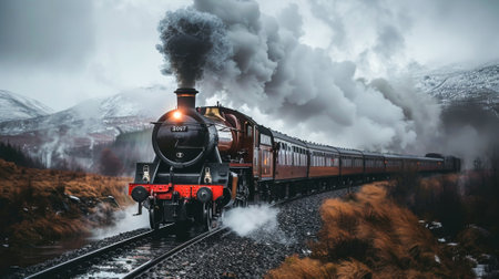 Vintage Locomotive Roaming Misty Volcanic Realms