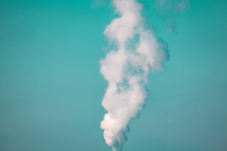 Smoke from pipes in the plant, polluting the environment. Dirty air in the sky.