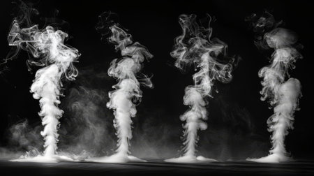 This mesmerizing image features ethereal smoke plumes gracefully rising against a dark backdrop, creating a captivating atmosphere perfect for artistic projects.