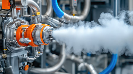 Close-up image of a heat exchanger optimizing steam for enhanced energy production. Concept Heat Exchanger, Steam Optimization, Energy Production, Close-up Shot, Industrial Technology