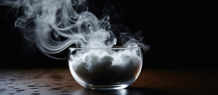 Smoke in a glass bowl on a black background with copy space
