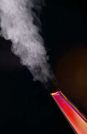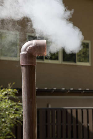 clean steam form smoking small bronze pipe at outdoor hot springs.