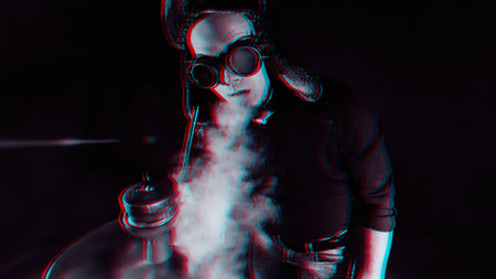 Character depicted in an abstract steampunk cyberpunk illustration
