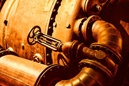 Old Valves industrial brown metal steel factory retro background. Voelklingen Ironworks High quality photo