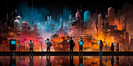 metaverse vr virtual reality with network, gaming of simulation, cyberpunk gamer background, 3d rendering illustration, scifi ai robot technology
