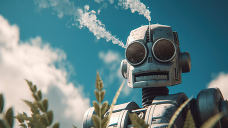 robot on blue sky background, generative ai.