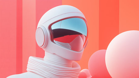 A sleek, white astronaut helmet with reflective glass against a backdrop of soft gradient colours. The minimalist design highlights futuristic aesthetics, merging space exploration with artistic expression.