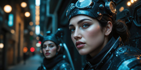 Determined young girls in steampunk goggles